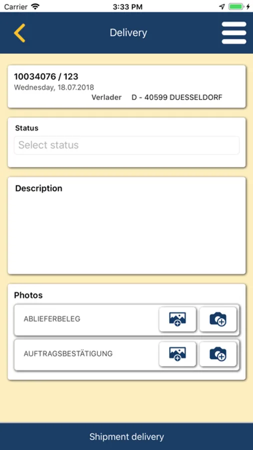 A push message informs about the receipt of a new tour. In the tour you will find all important information about the order as well as special shipment details about the loading and unloading point. Documents can easily be uploaded via the app. As soon as the status of the loading and unloading point has been set and the documents have been uploaded, the transport is completed.
