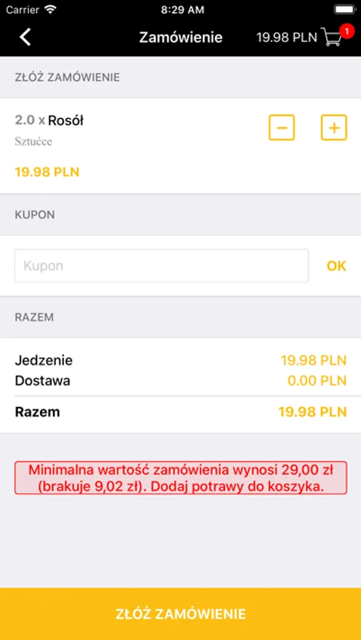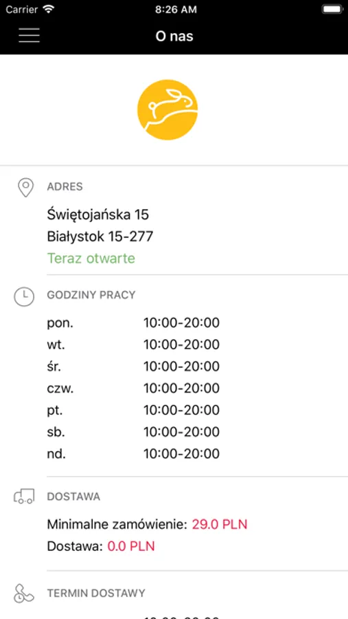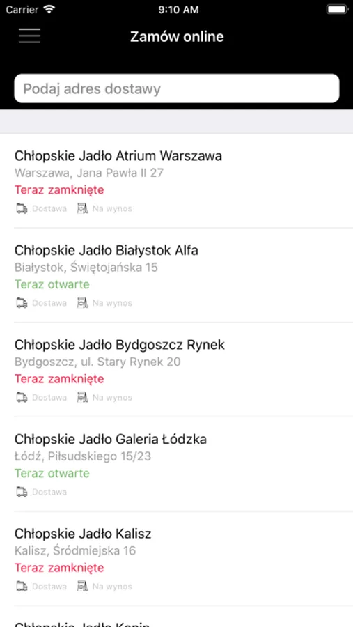 Oprócz zamawiania online aplikacja pozwala sprawdzić: