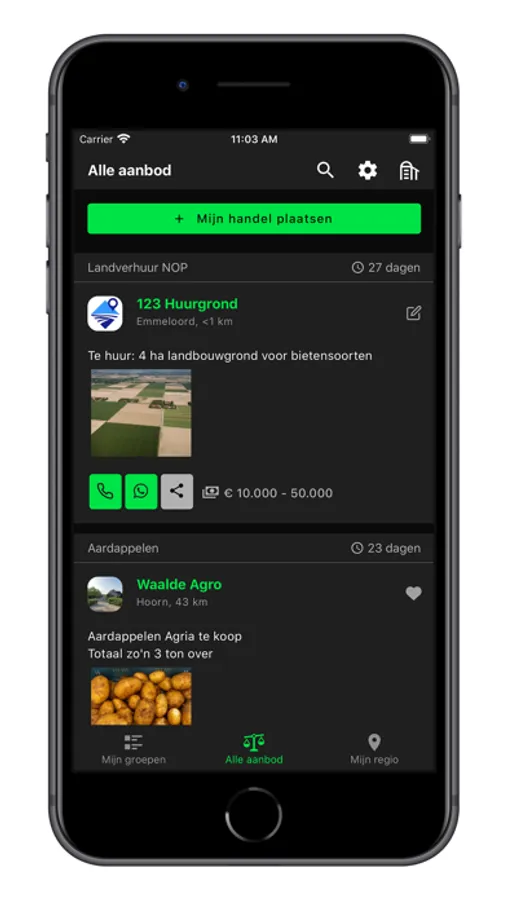 FarmTrade is een zakelijke, agrarische handelsapp waarmee jij als agrarisch bedrijf jouw handel kunt aanbieden aan een groot netwerk. Zoals bietenquotum, maar daarnaast kun je ook zelf handelsgroepen toevoegen.