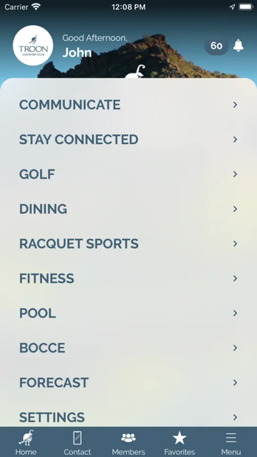 Welcome to Troon Country Club, where the experience of our members is our primary focus. We have developed a custom app to enhance your experience on and off property. With a touch of a button, you can send a direct message to the concierge or golf shop, book an event, view your monthly statement and even get your car from valet. We hope you enjoy the new, digital experience at Troon Country Club.