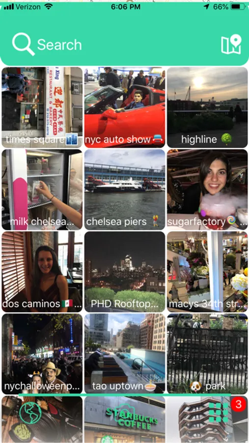 This is a location based social network that allows users to see events happening around them. Pictures are organized under one tag based on the location the user posted them.