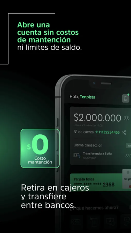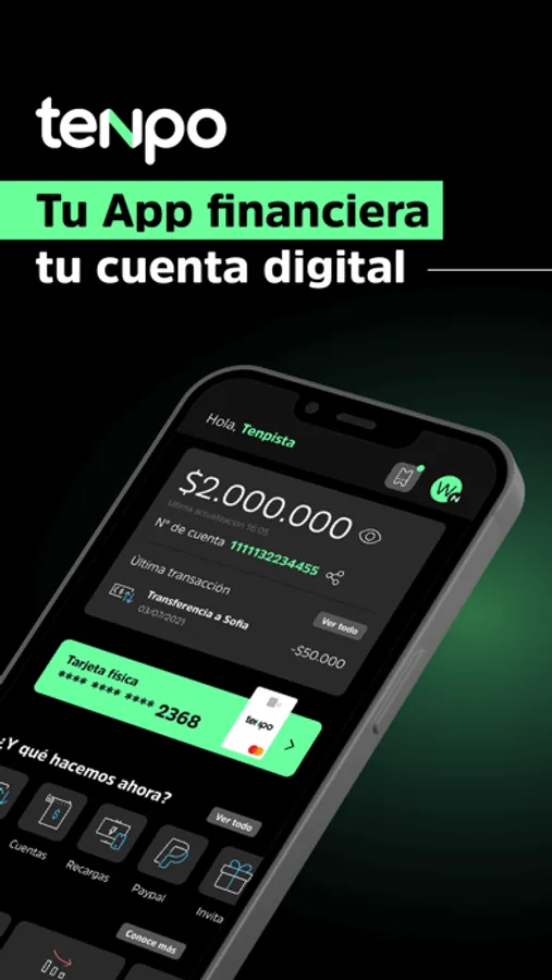 Tenpo es una cuenta 100% digital sin costos de mantención ni comisiones ocultas. Además súmate a los lanzamientos de Teenpo cuentas para clientes entre 14 y 17 años y Tenpo Business para negocios ¡Olvídate de los tradicionales bancos y transformemos juntos la industria financiera!