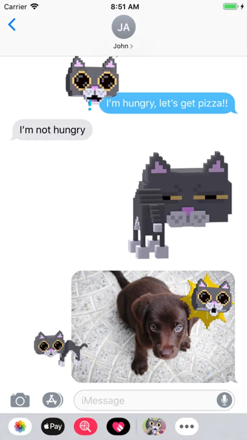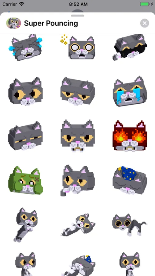Super Pouncing is a sticker collection of a boxy cat with a pixel art style and expressive eyes. This feisty feline is ready to pounce on your conversations with friends and family!