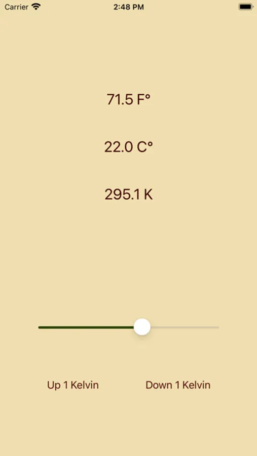 ThermoSlide is a simple app for quick temperature conversion between Fahrenheit and Celsius. Slide the control left to right, or tap the buttons to change the temperature, and the app will display the value in both scales at the same time. Simple. No network required.