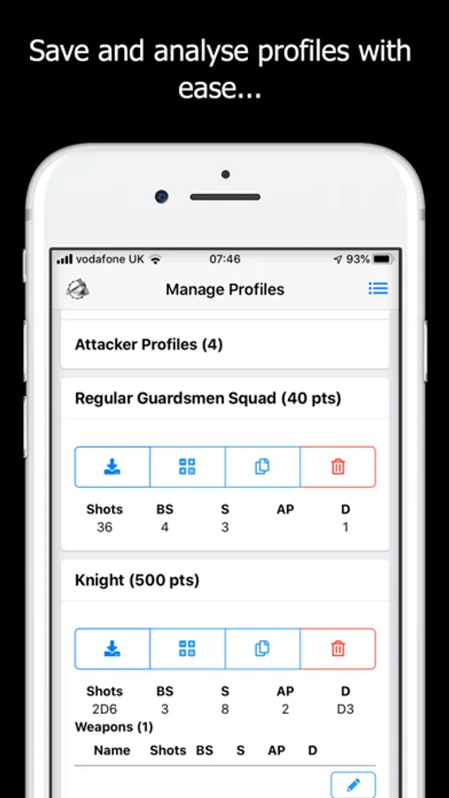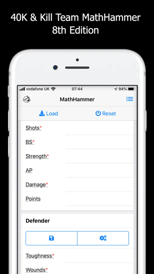 - Quickly input and save attacker and defender profiles