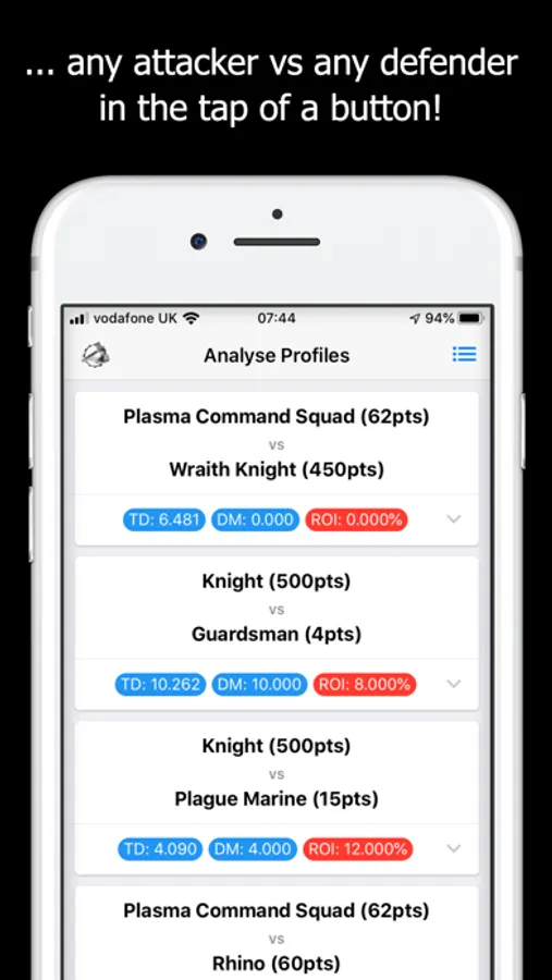By using MathHammer 40K you get perfect target prioritization in one click, for your whole army.