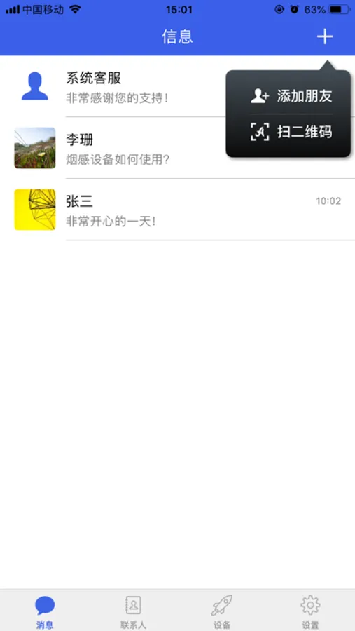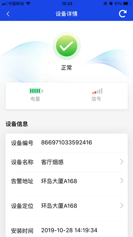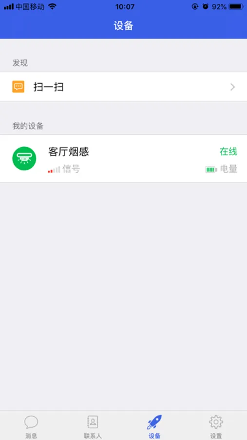 用户扫描设备二维码,直接添加;及时查看设备信息,当前状态、电量、信号,以及设备基本信息等。