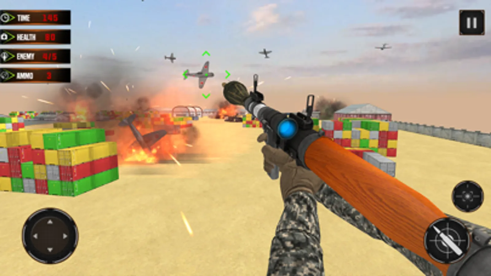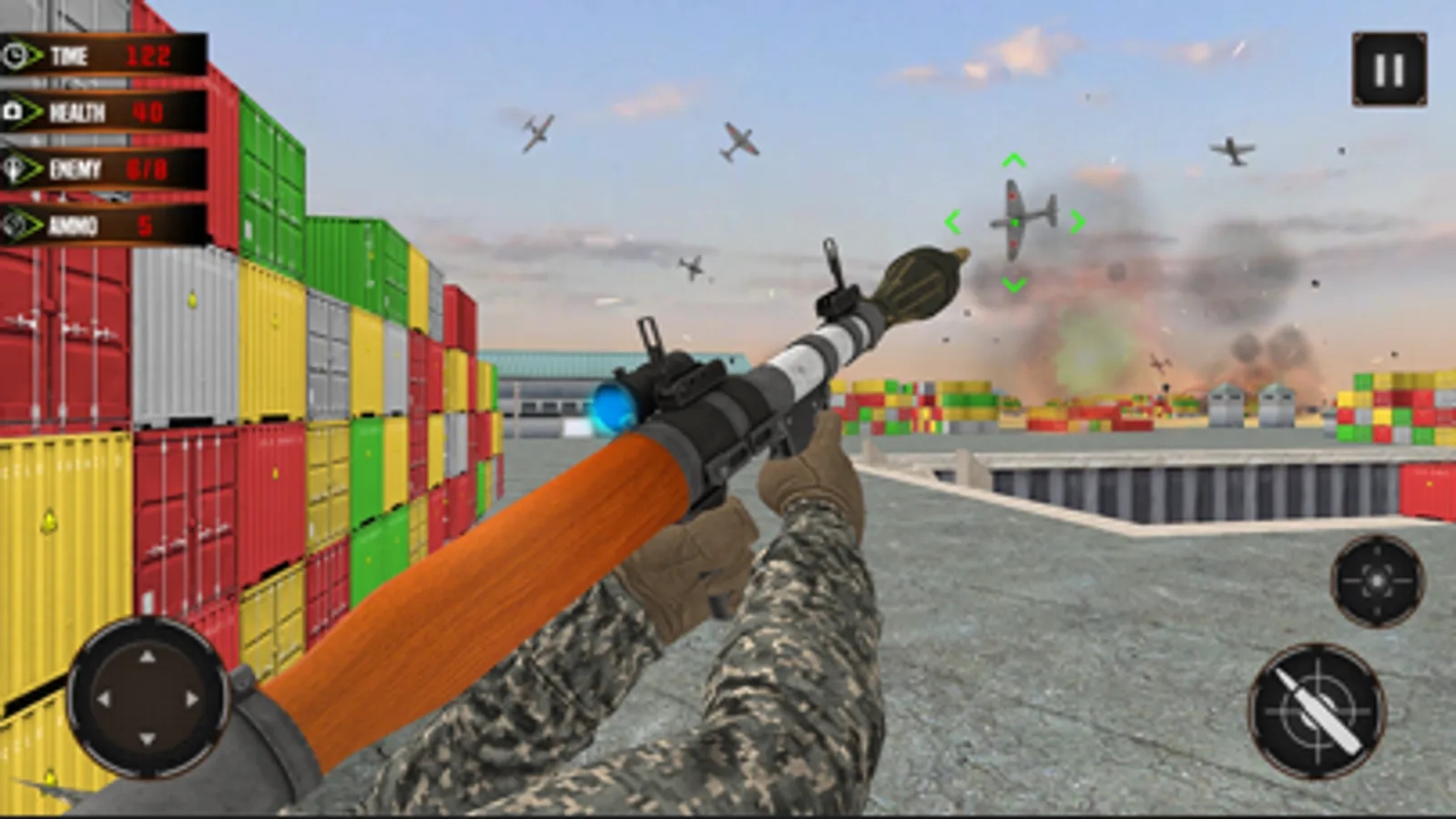 Airplane Combat Shooting Games is action game in which you have to select rocket launcher and aim to airplane target .You will have limited weapons rockets in specific mission . You have to eliminate all the targets to complete mission .In every next mission difficulty level of mission will increase according to mission targets and weapon availability .