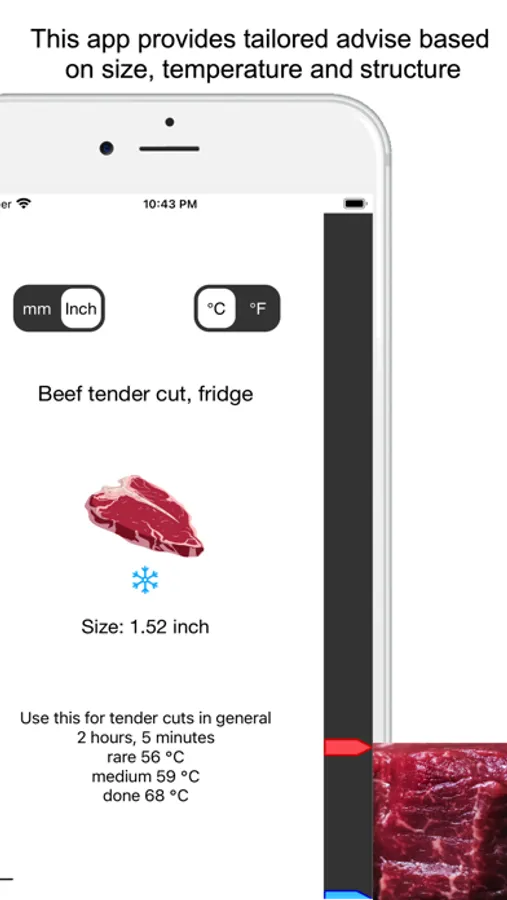 Use your iPhone or iPad as a ruler / caliper to determine the thickness of your ingredient and let this app do the math. Get a tailored temperature and time for any ingredient!