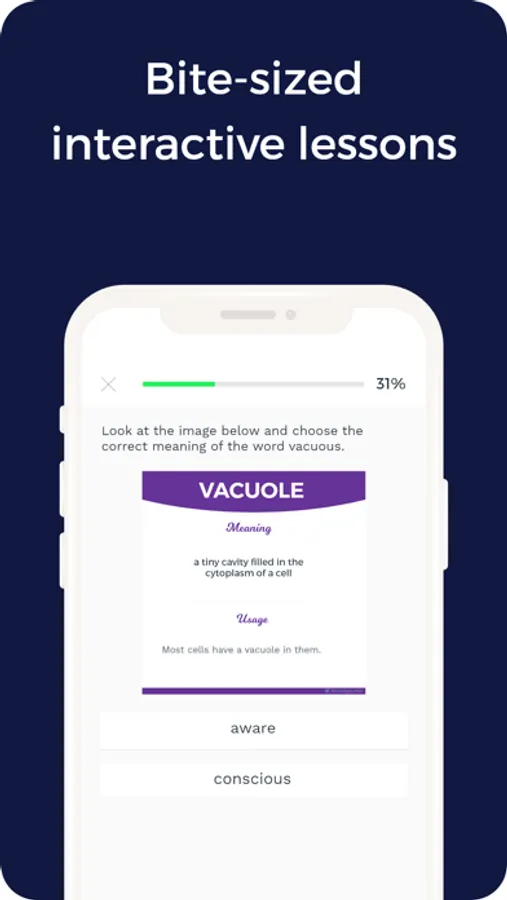 1. Vocabulary Courses: A must-learn wordlist to build and improve your vocabulary, comprising 500+ words of basic, intermediate, and advanced levels that will help improve your English. These courses include meanings and example sentences for each word.