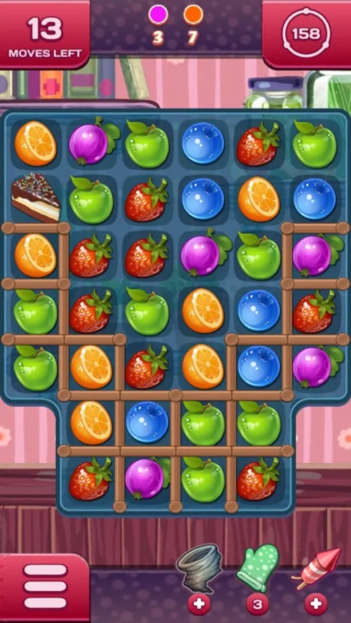 Swap fruits of the same colors to create unique boosters with special matching three combinations. Use boosters for huge explosions to blast your way, But match carefully – it’s not so easy when you have limited moves.