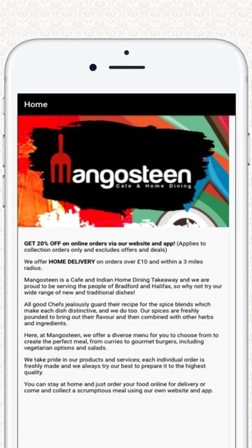 Mangosteen is a Cafe and Indian Home Dining Takeaway and we are proud to be serving the people of Bradford and Halifax, so why not try our wide range of new and traditional dishes!