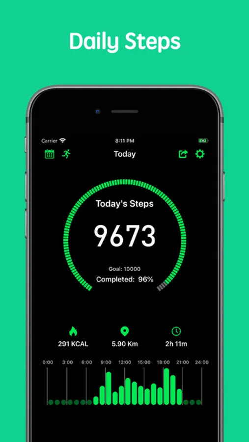 - Track your activity, calculate your steps, calories, distance, activity time, etc.