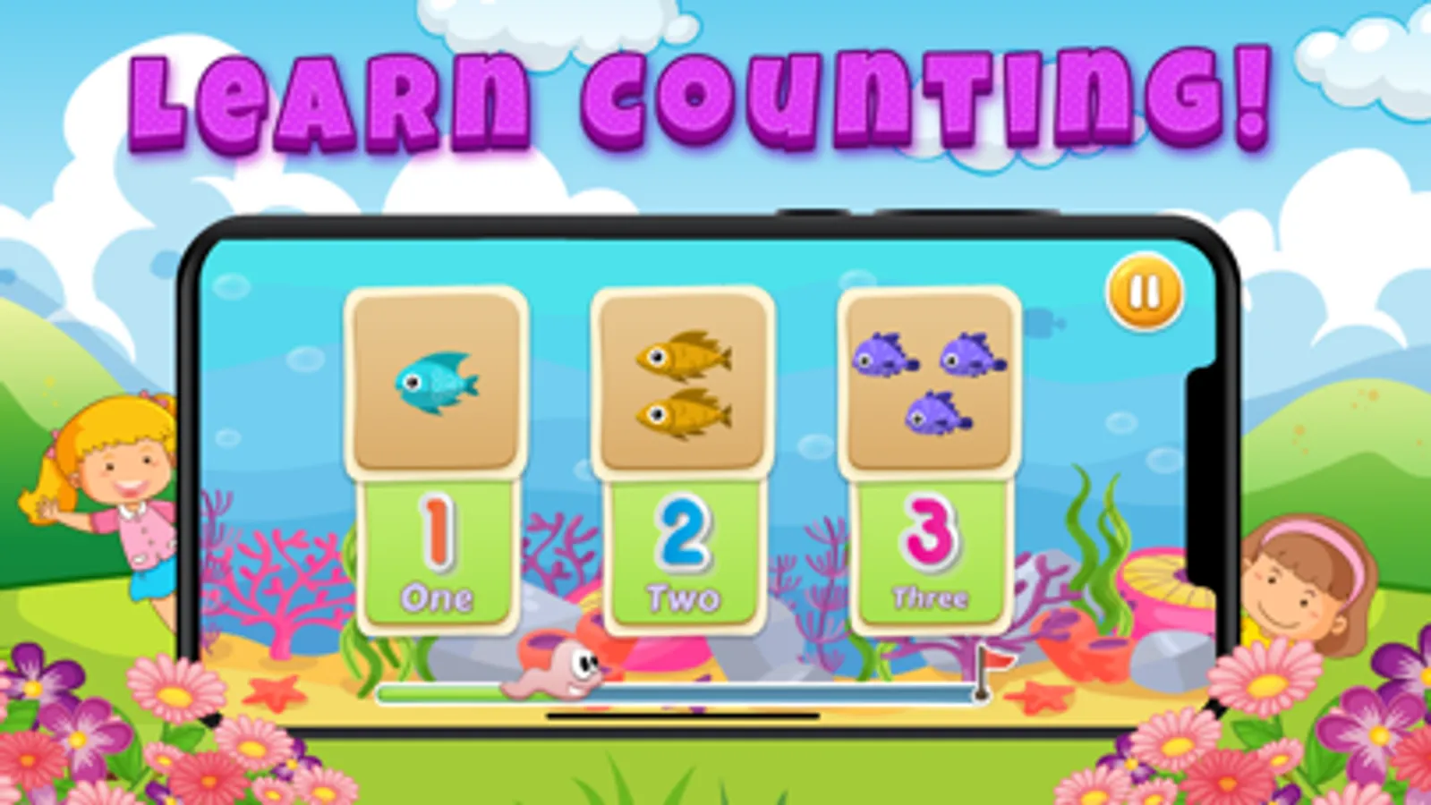 - Numbers (identify numbers and learn counting with a fruit basket game)