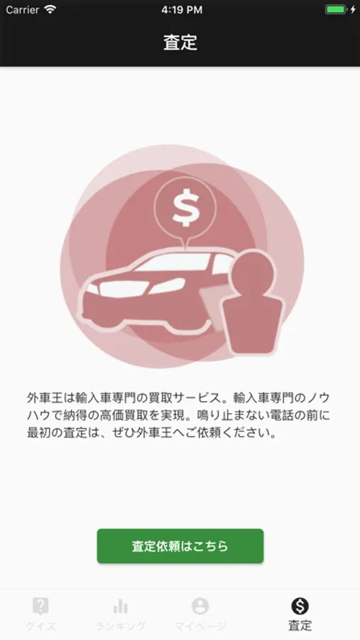 外車王のお届けするクイズアプリは、気軽に自動車に関するクイズにチャレンジできます。