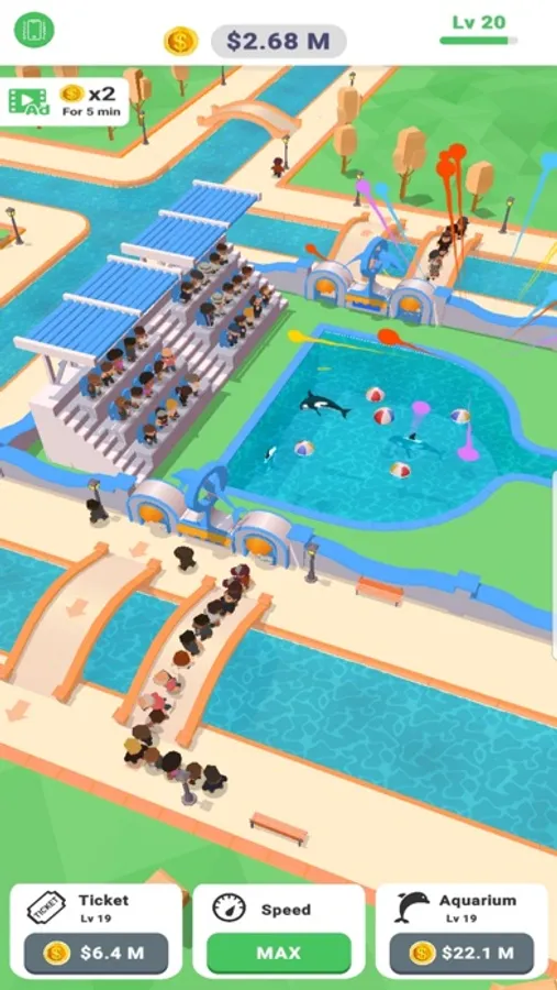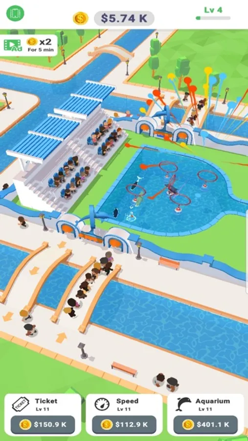 In Idle Sea World you manage your aqua theme park! Idle clicker game with deep meta game and addictive action. Organize and advance the quality of the show, tickets and capacity of the stadium to make the worlds most advance and profitable sea world park!