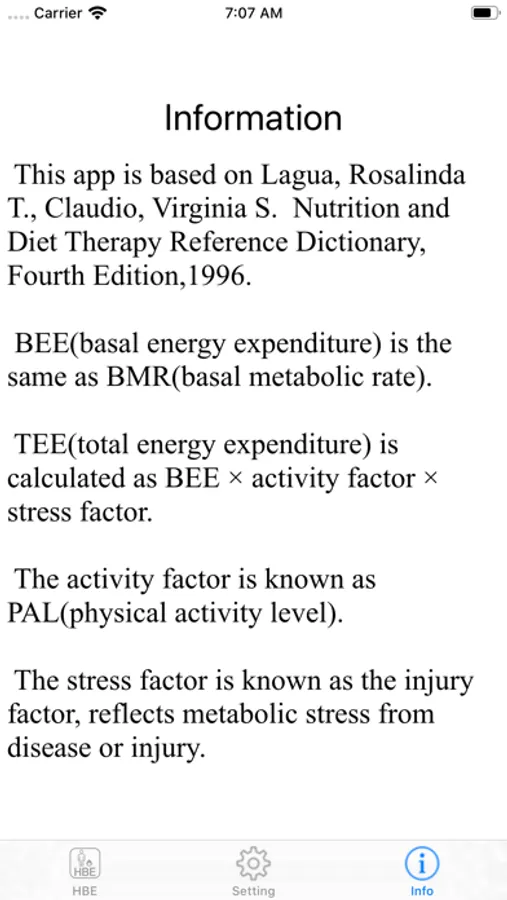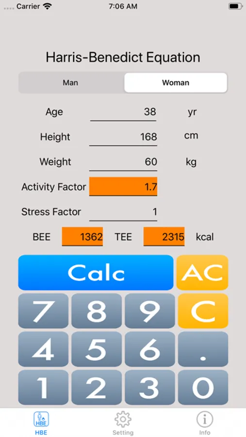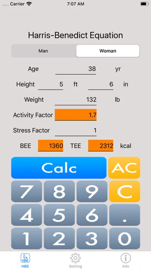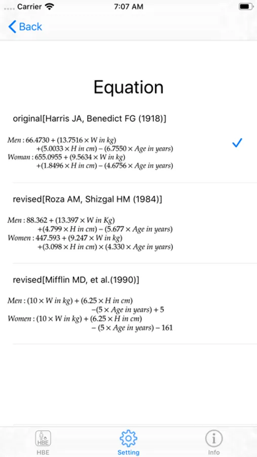 Harris Benedict Equation Screenshots