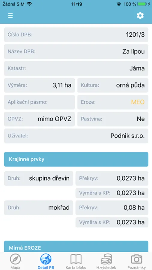 Aplikace GC ÚPRAVY® Zemědělec Vám umožní přistupovat k údajům agronomické evidence z tabletu nebo chytrého telefonu. Přímo v terénu aplikace zjistí Vaši skutečnou polohu a zobrazí kartu honu, kde uvidíte údaje o půdním bloku a základní agronomické evidence k tomuto bloku. Dostupné jsou údaje o plodinách, osivech, produkci, hnojení, použití přípravků na ochranu rostlin, pracovních činnostech a hospodářském výsledku. K dispozici máte s sebou také mapovou prohlížečku, kde si ověříte přesnou hranici půdních bloků. Mapu jednoduše podložíte leteckým snímkem, základní nebo erozní mapou, případně jinou vrstvou WMS. Součástí mapy je i katastrální mapa s možností vyhledání údajů v Nahlížení do KN.