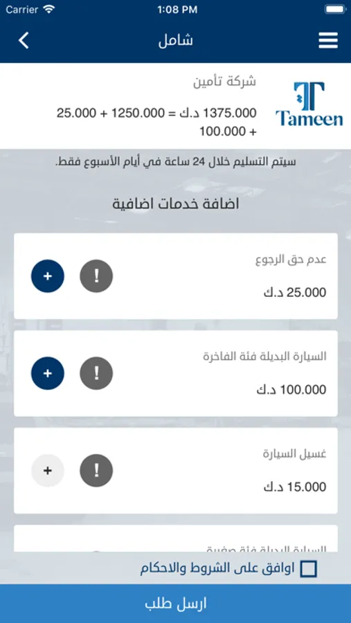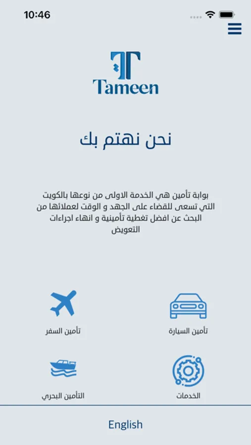 TAMEEN is the first application in Kuwait, the Middle East and the world for insurance companies, facilitating customer access to insurance companies and providing better and faster service to customers by providing services that eliminate the effort and time in searching for the best insurance coverage from insurance companies, Such as replacement car service and road services. You can end the compensation procedures when accidents happen while you are in your place without going to the insurance companies until you receive your car from the garage after repairs and make it easier for the companies to manage through car divisions and the associated companies.