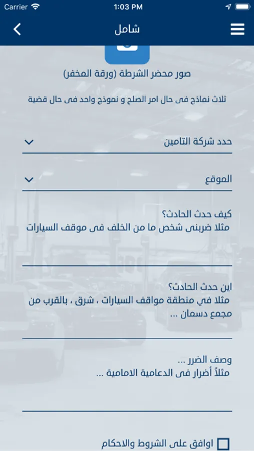 • طلب تعويض واصلاح سيارتك لوثيقة التأمين الشامل