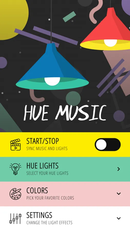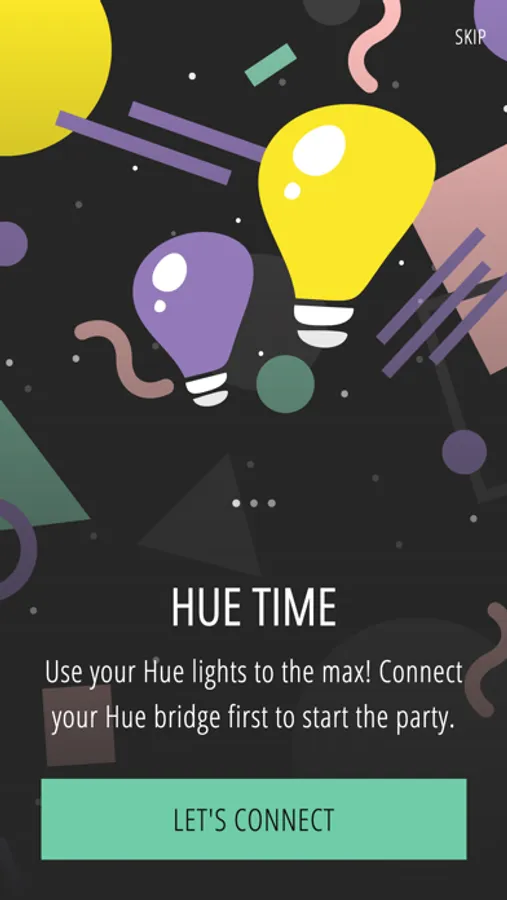 Sync your music with Philips Hue lights and enjoy a light show with real-time audio visualisations at home. Connect one or more Hue lights to the app through a simple onboarding procedure and enjoy your disco music party. The app creates a real-time light show based on the incoming music, using the microphone of your device. It synchronizes your Philips Hue lights to the music. Adjust the settings to create your desired ambience, from disco party to relaxed atmosphere. You can use the app for free for fifteen minutes, after which a one-time in-app purchase is required to continue using the app.