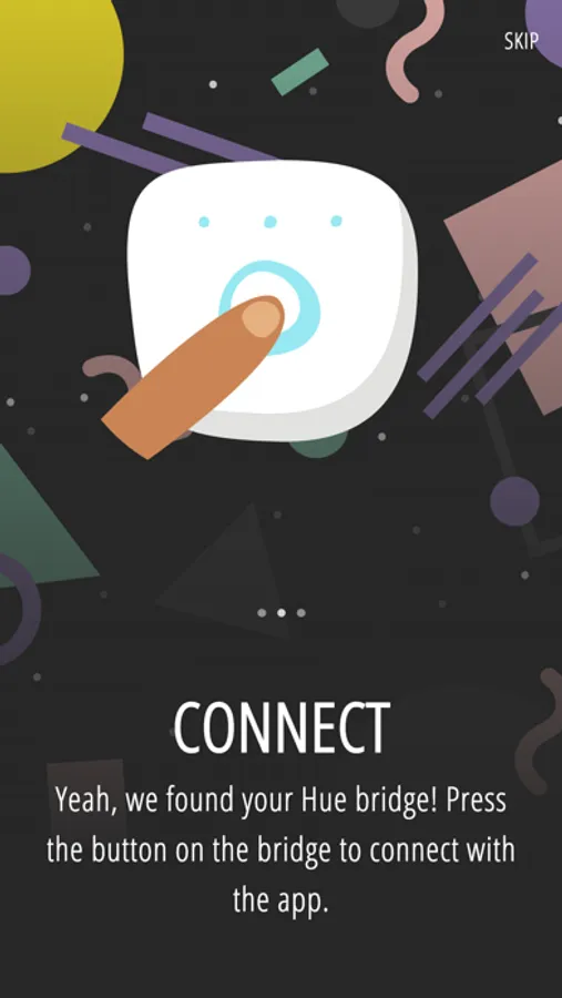 - Step 2 - As soon as your Philips Hue bridge is detected, you need to connect it to the app by pressing the big button on the Hue bridge.