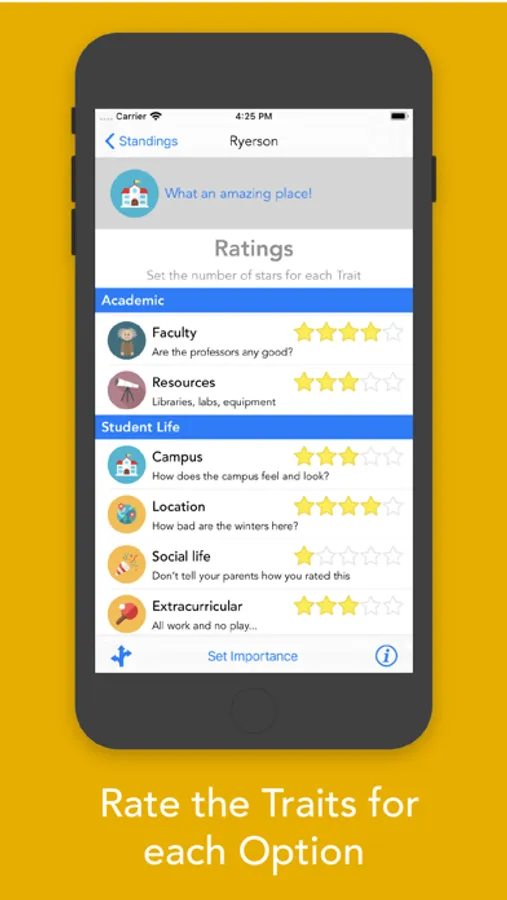 • Two ways to set importance, a simple drag and drop list of most important to least important or a more precise setting for each Trait
