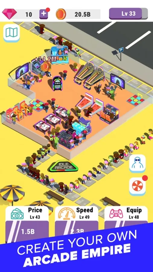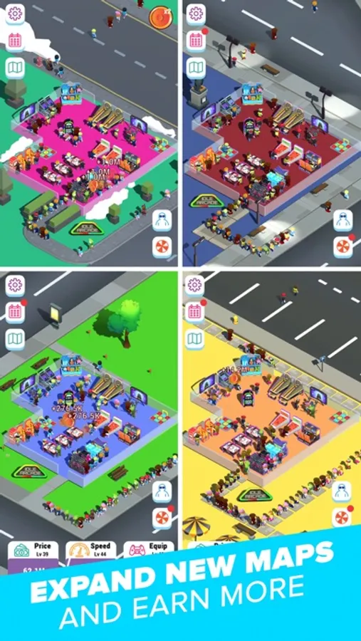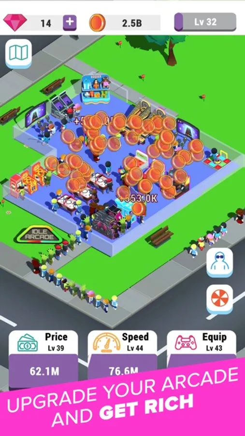 Manage your own arcade center! Earn money, expand your building and serve more and more customers.