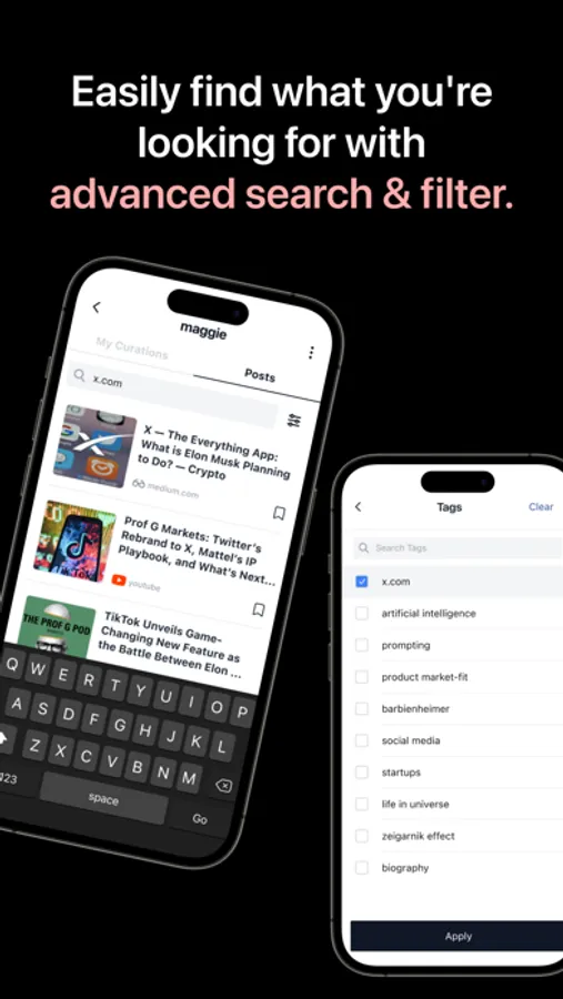 Our OpenAI integration automatically tags your curated content, so you can easily find what you’re looking for when you come back: your latest AI read or a history podcast from last year.