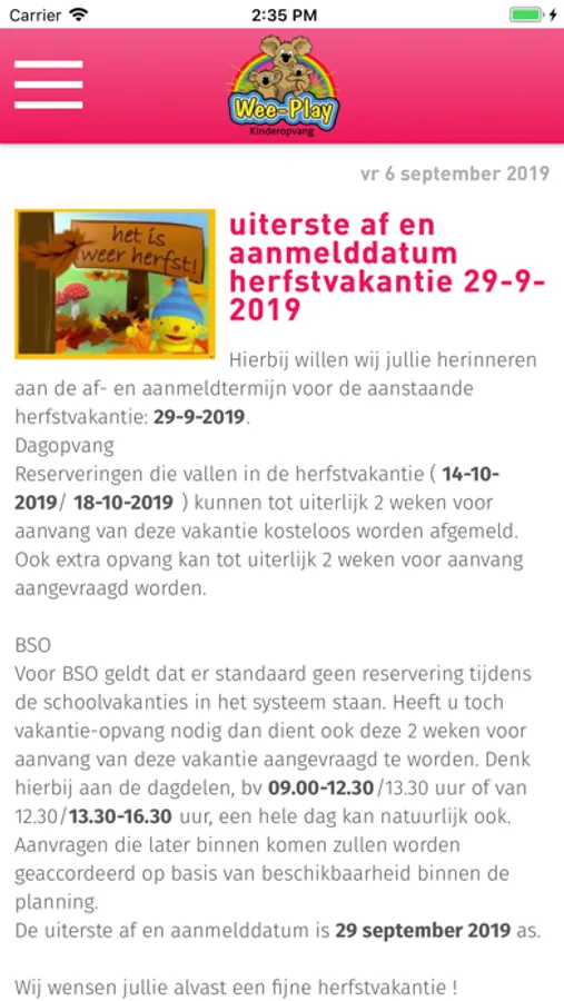 · Ontvang direct actuele mededelingen en nieuwsberichten van uw kinderopvang