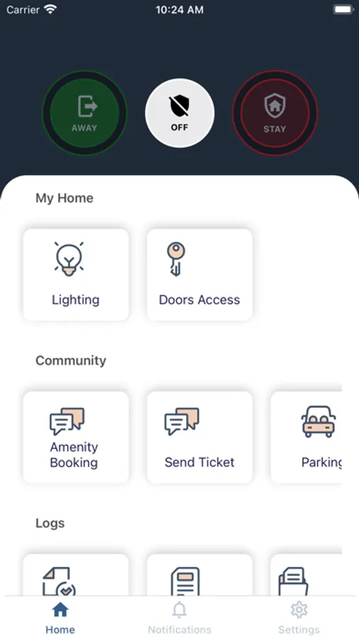 Residents in SmartONE powered units can use the ONE! app with the installed wall pad interface for a simple way to interact with their suite and building amenities. Features can include door locks, temperature controls, motion and security sensors, cameras, package notifications, and other services provided by the building.
