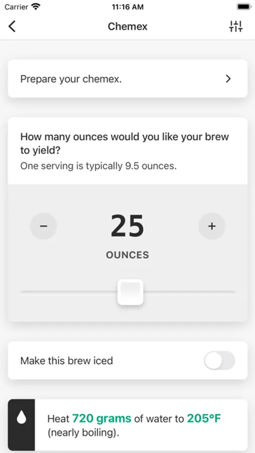 • Iced recipes: Every pour-over includes recipes for iced versions with an in-recipe toggle.