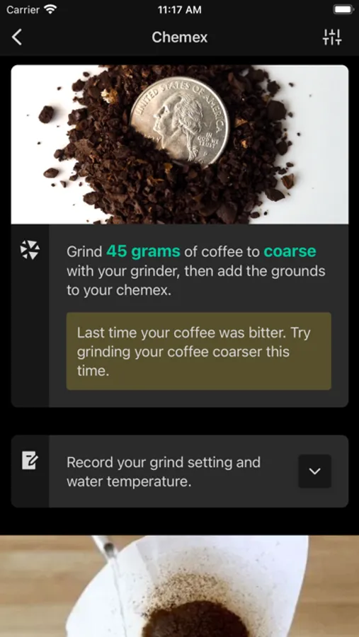 • Smart suggestions: Once you rate your brew, you'll see a suggestion of how to improve next time.