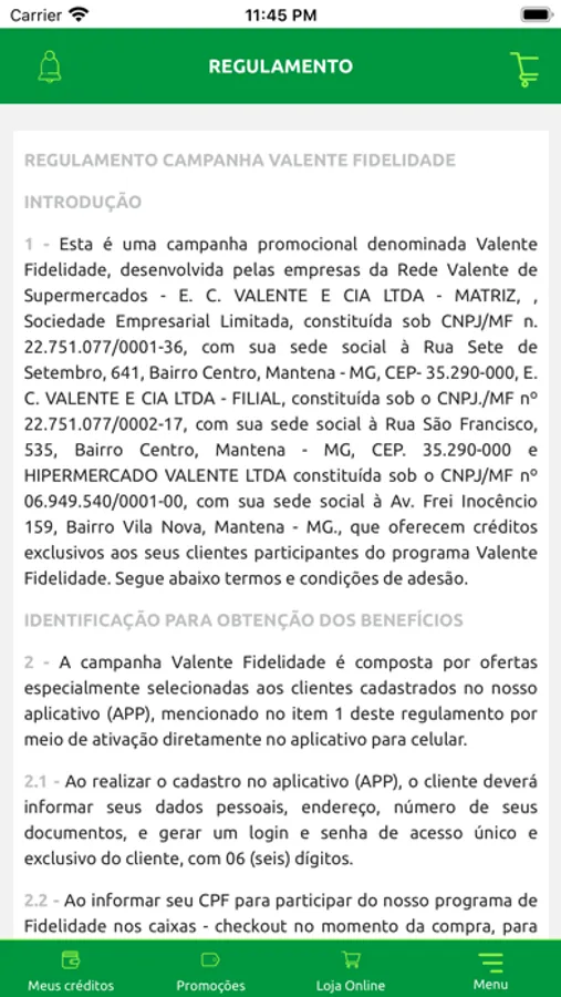 Funciona assim: você baixa o app Valente Fidelidade e faz seu cadastro na promoção. Pronto. Você já estará apto a participar dessa promoção e ganhar créditos em suas compras nas lojas da Rede Valente, que vão te ajudar a comprar ainda mais barato em nossas lojas. Confira o regulamento completo em: http://www.souvalente.com/.