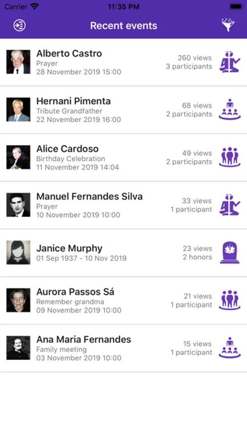 The family relationship is an essential pillar of the platform, as such, in EVOCARE we can create a profile in memory of a loved one. To this profile we can attribute a kinship connection, communicate and share testimonies and tributes, which will be preserved over time, ensuring that the memories will be perpetuated from generation to generation, stimulating and preserving the family bond.