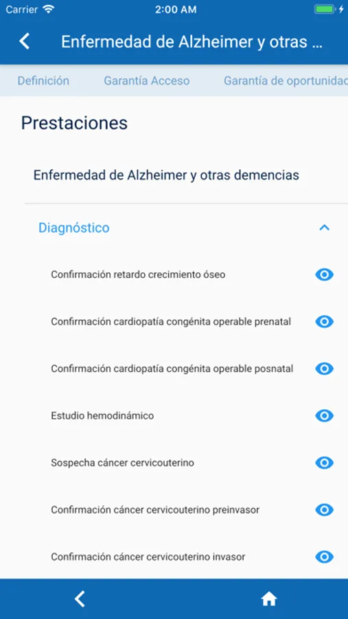 Son garantías relativas a acceso, calidad, protección financiera y oportunidad con que deben ser otorgadas las prestaciones asociadas a un conjunto priorizado de programas, enfermedades o condiciones de salud que señale el decreto correspondiente.