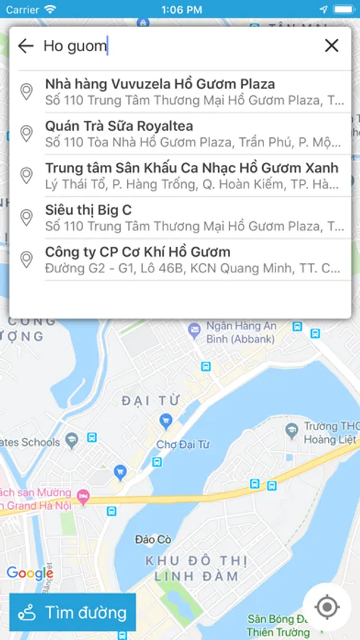 - Tìm kiếm điểm dịch vụ trong khu vực Việt Nam (Hà Nội)