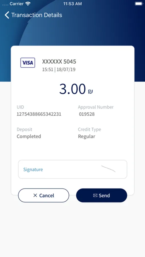 צפיה בכל פרטי העסקאה והסטורית העסקאות באפליקציה