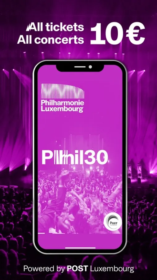 Powered by POST Luxembourg, the Phil30 concert tickets and app enable the next generation to easily explore music through live concerts. Thanks to POST, concertgoers up to the age of 30 (or aged 30 and younger) can easily benefit from a favourable rate of only 10 € per ticket.