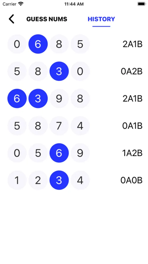 This game is the same as another game called cows and bulls. You will plug in different series of numbers and the game will tell you how many cows (B) and how many bulls (A) you have. Bulls are numbers that are in the correct position and Cows are those that are the right number in the wrong position. So in this game the cows and bulls do not overlap. So if I type in “1234” and the game gives me 2A and 0B then I have two numbers in the right spot. When I try “1564” I get 1A and 2B meaning that either the 1 or the 4 is in the correct spot and 5 & 6 will more than likely be numbers in my pattern.