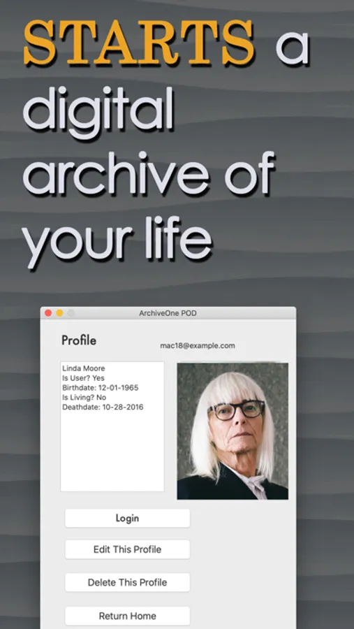 Once you install the POD you will be asked for a valid email address. After confirming your email address you are ready to create your first Profile aka archive. Add as much information as you are comfortable with initially. In just a couple of minutes your POD will be able to login to your newly created ArchiveOne archive.