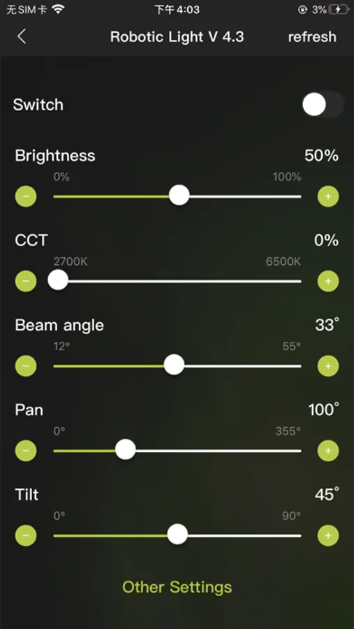 进入APP里的设备详情界面对灯具进行开关、调亮度、调色温和电动灯具的电机角度等控制,使灯具操作变得更加简便 !