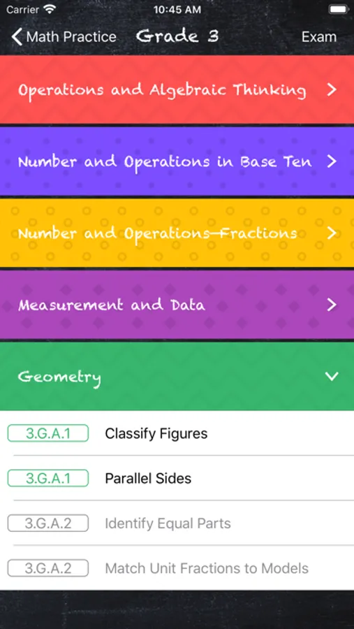 Math Practice Worksheets app is a versatile math exercise generator fully aligned with Common Core Math. It can generate hundreds of different math questions with answers categorized by standards for grade 1 up to grade 6. Exercises include word problems, arithmetic questions, geometric questions, algebraic thinking and problems with graphs. All categories of Common Core State Standards for Mathematics are covered in Math Practice.