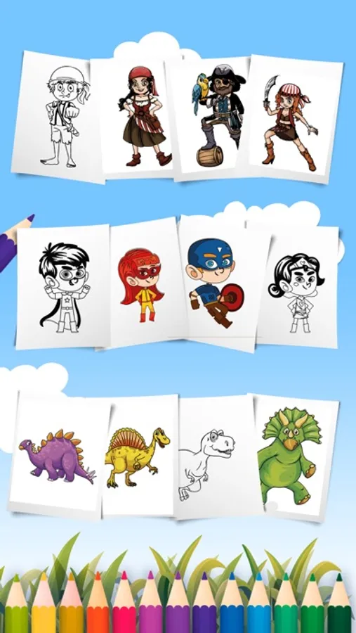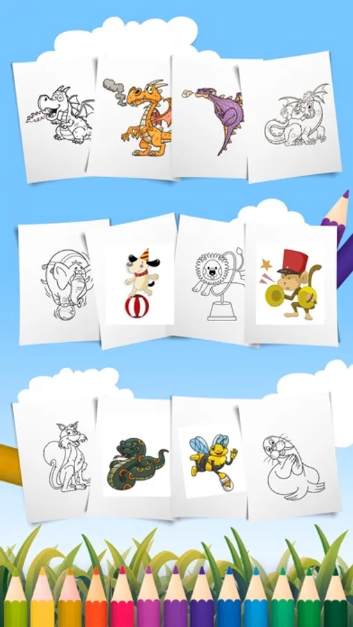Enjoy different categories of our coloring book game. Explore amazing drawings of animals, dragons, circus and fantastic creatures.