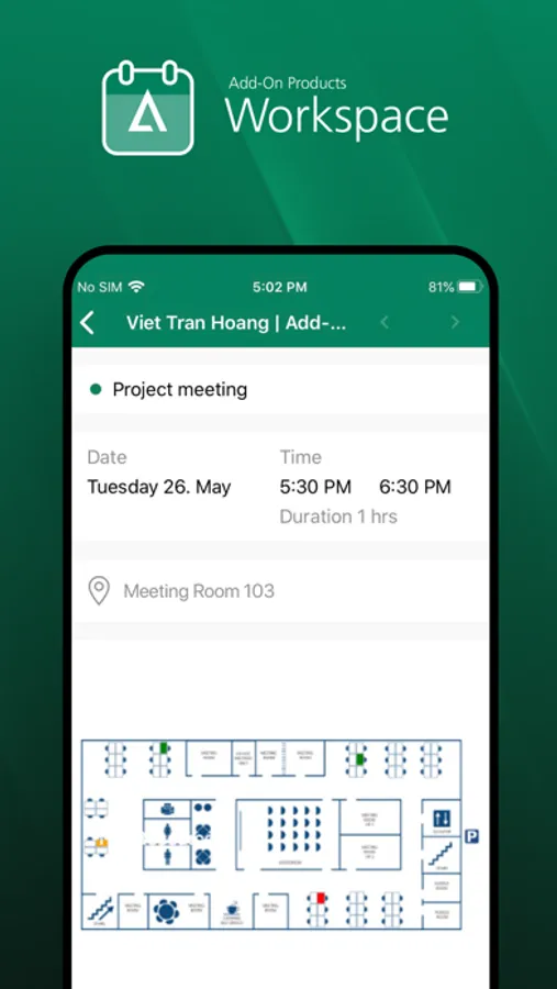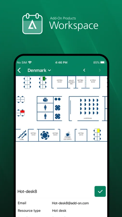 Workspace is a mobile app that provides an easy way to book Microsoft Office 365 and on-premise resources e.g. meeting rooms and hot-desks.