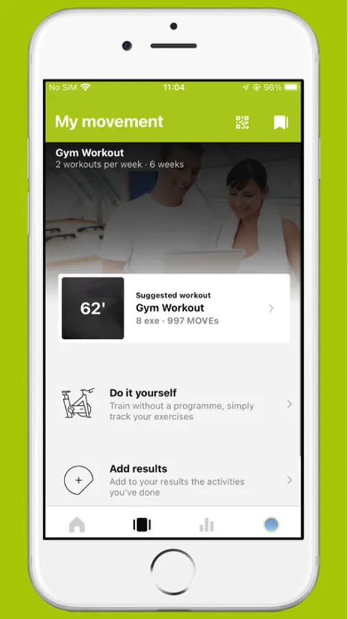 MY MOVEMENT: What you’ve chosen to do: here you will find your programme, classes you’ve booked, challenges you’ve joined and all the other activities you’ve chosen to do at your facility