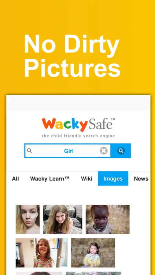 Kidos search results are represented with large thumbnails, which makes browsing the results easier, differentiating between them, and clicking on the most appropriate results for your query.