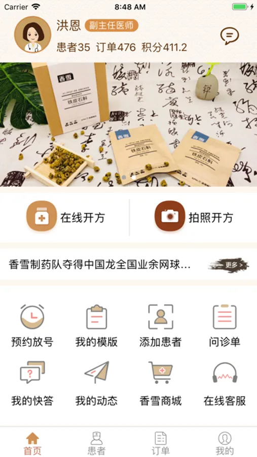 患者如需用药指导或反馈用药后反应,可及时咨询医生。 香雪智慧中医主要为患者提供在线图文咨询服务、患者病理管理、线上复诊管理、移动处方系统等服务。医生在碎片时间内放出 “号源”,患者可以在线预约医生线上复诊,或到医生指定线下场所进行线下诊疗咨询服务等。