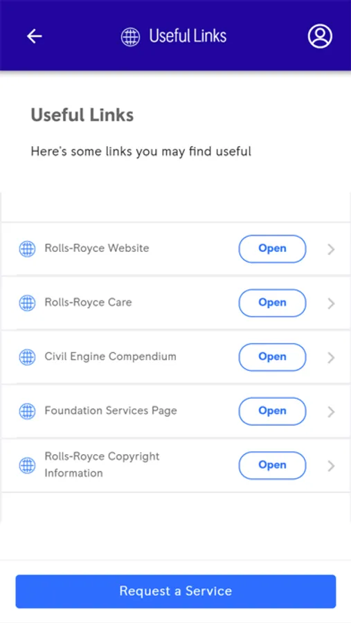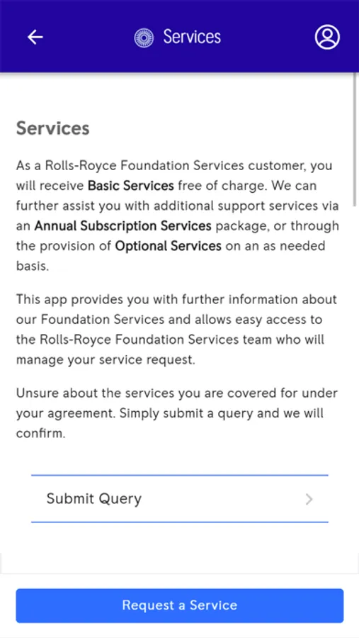 Providing Rolls-Royce Foundation Services customers with easy access to understand and request Rolls-Royce services specific to the needs of an aircraft, contact details for the Rolls-Royce Foundation services team, information such as contact details, service locations and capabilities of the Rolls-Royce CareNetwork.