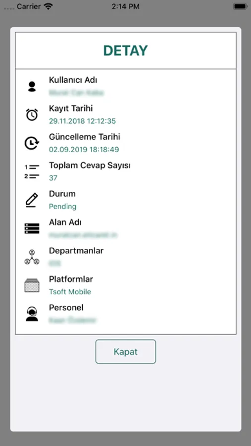 You can view the details related to the request and update the department and personnel.